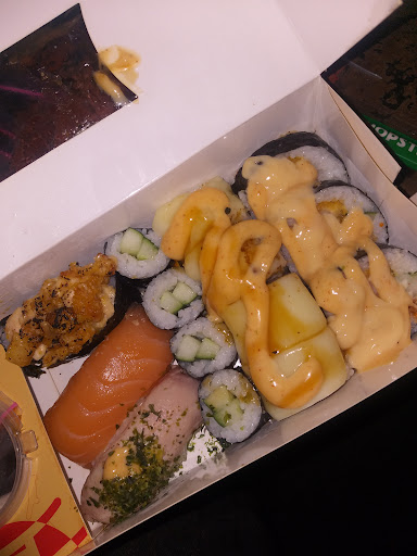 Nampan untuk membawa makanan berminyak dan banyak bekas kremes kremes yang bukan bagian pesanan kami. Pesanan juga lama datangnya karena restoran lebih mendahulukan pesanan online. Saat datang salah satu sushi yang dihidangkan nasinya dingin seolah-olah baru keluar dari kulkas.