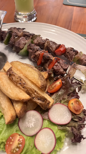 I ordered the beef shashlik. Honestly, I wasn’t sure what to expect, but it turned out to be kind of like skewered grilled beef, similar to sate but with bigger chunks of meat. It was pretty good the seasoning was flavorful, and the beef was tender. What I loved most though was the potato wedges that came with it. They were crispy on the outside, soft on the inside, and honestly didn’t even need any sauce. I also got to try my friend’s spaghetti carbonara, and it was really good too. The creaminess was just right, not too heavy, and it had a nice balance of flavor. I paired it with a mixed healthy juice, which was fresh and tasted great.
