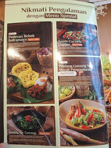13.30 WIB chicken, fish, soups are all sold out (even mineral water was sold out and I have to beg them to check again at the kitchen) I need to ask 4 times for the complimentary tea some of the foods are not came out, but still charged (need to wait for more than 5 minutes to clarify the order) waiting time was horrible. I spent 30 mins on waiting list and 1 hour on foods. Some of the other guests that came after me got their food earlier than us I was literally chasing the waiter and BEG them to serve us (more than one time) its pricey, but compared to talaga sampireun that on the similar price range and the same Lebaran/peak period? Iād prefer talaga sampireun 100% quality of foods are mediocre parking are limited, causing traffic jam ac are not cold at all, even though its behind our table somebody was locked in the bathroom