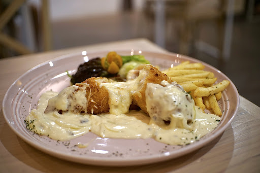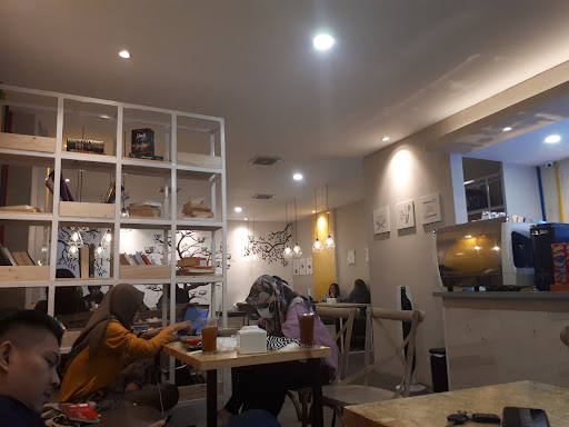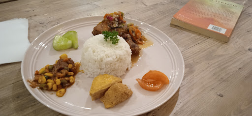 Pada awalnya saya sempat berekspektasi kalau kafe ini lebih dari sekadar kafe mahasiswa biasa. Interior dan eksteriornya berhasil memberikan saya impresi yang lumayan baik. Tempat duduk duduk berupa sangkar burung di bagian luar restorannya menurut saya cukup unik meskipun tidak sempat saya jajal karena saat saya berkunjung tengah hujan. Bagian indoor-nya juga lumayan cozy, saya sangat suka dekorasi rak-rak buku yang seolah mempertegas segmentasi dari kafenya. Yang saya agak bingung adalah batasan area smoking dan no smoking-nya yang practically tidak jelas. Yang menurut saya sangat perlu untuk di-improve adalah pelayannya yang payah. Pelayannya benar-benar lama. Saya melihat jika pembagian kerja pelayannya kurang efektif. Begitupun dengan bagaimana pelayan berkomunikasi dengan pengunjung maupun dengan sesama pelayan, seringkali terjadi miskomunikasi. Saya memesan 4 menu melalui seorang pria waktu itu, kemudian pelayan wanita membawakan saya 3 pesanan saya dan mengatakan kalau pesanan saya sudah keluar semua. Usut punya usut, ternyata salah satu pesanan saya tidak tersedia namun pelayan pria tersebut tidak mengkomunikasikan kepada saya sama sekali. Jujur bagi saya ini bukan pengalaman yang mengesankan sama sekali. Food: Chicken Cordon Bleu (42K): Menu berupa fillet daging ayam yang digulung dan diisi smoked beef yang beserta keju mozarella kemudian dibungkus dengan tepung kemudian di-deep fry. Cordon Bleu-nya disajikan bersama French Fries, salad, dan saus béchamel. Sejujurnya saya agak bingung karena di menu tertulis kalau menu disajikan bersama saus BBQ. Saus béchamel-nya menurut saya kurang pas karena rasa creamy dan cheesy-nya yang overkill, apalagi kalau dipadukan dengan chicken cordon bleu dengan tepung yang tebal dan ayam yang super kering, belum beberapa suap saya sudah begah. Untung saja side dish-nya masih OK. Caesar Salad (25K) Sayur-sayuran yang digunakan pada menu ini lumayan segar. Pada saladnya juga ditambahkan smoked beef yang bisa juga dijadikan nilai plus. Saladnya juga disajikan dengan keju yang dipotong dadu serta keju yang diparut. Sayangnya penambahan keju ini tidak diseimbangkan dengan dressing yang biasa digunakan untuk Caesar Salad seperti Lemon dan Olive Oil, alhasil citarasa saladnya menjadi sangat membosankan Spicy Tofu (13K) Sejujurnya menu ini memberikan impresi yang sangat baik, saat datang aroma tahu goreng dan bumbunya sangat kuat, benar-benar appetizing. Bumbunya memang enak banget, bukan cuma pedas dari rawit belaka tapi juga gurih bawang-bawang-an. Sayangnya tahu gorengnya mengecewakan. Tahunya digoreng dengan tepung yang sayangnya menghilangkan citarasa tahunya. Tepungnya juga membuat tahunya menjadi keras banget. Sayang banget! Beverage: Iced Lemonade Selasih (23K) Menu ini merupakan satu-satunya menu yang saya rekomendasikan karena memang enak banget. Menu ini berupa lemonade yang disajikan dengan bji selasi lengkap dengan Nata de Coco. Citarasa minumannya menurut saya...