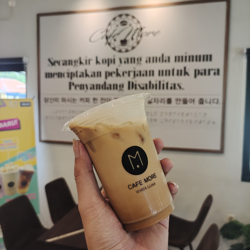 Read moreCafe More menyajikan pengalaman yang benar-benar berbeda. Di sini, kamu akan dilayani sepenuhnya oleh para barista disabilitas yang ramah dan penuh semangat. Keramahan mereka terasa sejak pertama masuk, membuat proses order jadi menyenangkan. Setelah pesanan siap, kamu bisa mengambilnya di counter. Ada banyak meja, kursi, dan sofa yang nyaman. Suasana sejuk berkat AC, dan harganya cukup terjangkau. Menariknya, banyak juga tamu disabilitas yang datang menikmati kafe ini. Tempatnya nyaman untuk kerja maupun ngerjain tugas-tugas 😁😁 Di samping kafe, ada tempat urut dan sekolah disabilitas. Jika kamu mencari pengalaman kafe yang unik sekaligus ingin mendukung saudara-saudara kita disabilitas untuk terus berkarya, Cafe More wajib kamu...