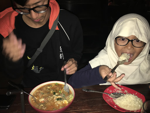 Read moreWe came here 3 times, always late evening. The restaurant is open 24 hours if I am not mistaken. Too pricey for a regular taste. The famous ‘surabi’ (Sundanese pancake) is their speciality. Lots of variants. The Mie kocok and seblak kikil special were not as expected. Actually disappointing. Krupuk dlm seblak banyak yg tidak matang. Daging dan kikilnya juga bnyk yg keras. Cekernya kecil bgt, mungkin berasal dr ayam pitik kali. Pesan lychee yakult, Jangan harap ada buah lychee-nya hahaha. Surabinya OKlah. 1 is enough for a small belly. Cukup mengenyangkan. Live music is available. Sayang tidak ada ruangan utk non-smokers. Anak saya agak sesak nafas krn bingung mau duduk di mana lagi. Mungkin saran saya kalau restaurannya berkembang, ada 1 ruangan utk...