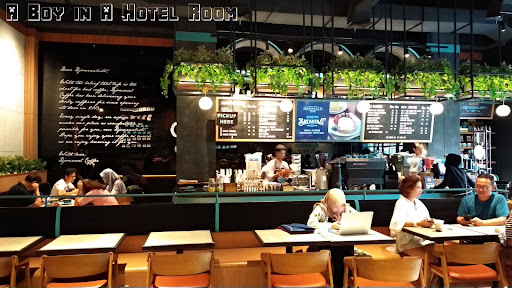 Iseng-iseng main ke pvj, sekalian dah cari kedai kopi yang ada smoking room, akhirnya memutuskan kesini. Udah sering denger brandnya tapi baru pertama kali kesini. Harganya middle up, masih di bawah sbux. Lokasinya gak begitu jauh dari bioskop, turun eskalator, belok kiri dan ambil jalan ke area parkir mobil luar ada sebelum eskalator tengah. Semoga jelas yaa hehe.. Kedai kopinya secara suasana okee, baik di dalam dan outdoor. Karena perlu merokok, kita diem di luar dan karena lagi penuh jadinya duduk di meja bulat dengan kursi pegal ala kedai kopi tea geuning, meja bundar dan ada kursi yang memanjang juga. Jadi disitu tuh untuk satu meja cukup untuk 3an aja. Gak terlalu luas sih kalo bagian outdoor mah. Kerasa kalo mayan penuh.
