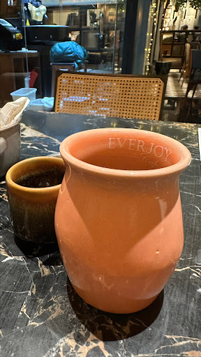 Chimicurri Bisteca (9/10) Pilih versi premium local. Tingkat kematangan medium well. Daging steak tergolong empuk. Mudah dikunyah dan mudah dipotong, meski pada bagian tertentu masih sulit dipotong karena bagian tersebut memang keras. Bumbuya cukup minimalis sebatas asin saja karena mengandalkan rasa dari chimicurri. Selain disajikan pada wadah, chimicurri juga disiram di atas daging. Surga bagi penyuka chimicurri. Sayangnya, saus agak sulit diambil karena terlalu berminyak. Rasa chimicurri versi Everjoy cenderung asin. Menu disajikan dengan mash potato dan Creamy Baby Spinach. Mash potato rasanya biasa saja, tapi porsinya cukup banyak. Creamy Baby Spinach versi Everjoy agak mengecewakan. Sayur tampak berminyak dan rasanya terlalu asin.