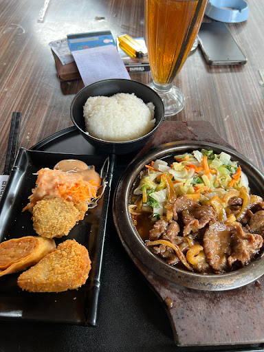 Makanan : Makanan yang kita pesan adalah menu teppan yang special 2, rasanya menurut saya enak, rasa dagingnya enak dan juicy, sayurnya, dan menu gorengnya, semuanya dalam keadaan panas. Tapi menunggu makanannya yang gak enak sekitar 45 menit kita tunggu menu teppan ini, memang setelah dikonfirmasi ke pelayannya pada menit ke 30 penjelasannya kalau menu teppan yang kita pesan memang lama mempersiapkannya. Jadi harus bawa cemilan atau pesan menu yang ringan dulu buat ganjel lapar sebelum menu utamanya siap karena kalau cuma makan kerupuk aja sih tetep gak bisa tahan lapar.