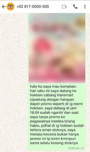 Read morePenilaian untuk karyawan hokben Transmart cipadung, lain kali kalau pembeli sudah bilang tidak ada tambahan. Tolong setidaknya jangan maksa, saya baru saja pesan hokben, setelah saya bilang tidak ada tambahan lagi, mbaknya bilang "pudingnya mau rasa cokelat atau karamel?" tidak ada bahasa mau tambah pudingnya tidak?. Saya kira sudah include, krn saya sudah tegaskan tidak ada tambahan, dan baru ngeuh pas bayar d kasir, Merasa kecewa saja seolah dipaksa...