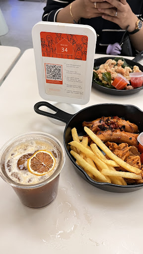This way their system doesn't make sense at all. You have to find a table, scan the QR code there for the ordering system, which binds your order to that table, and then your order won't be finalized until you pay. If you pay by cash, you have to leave your table - during which someone else might occupy your table if you're alone. At the end, when they serve your food, they'll call you by name, making the binding to the table useless.