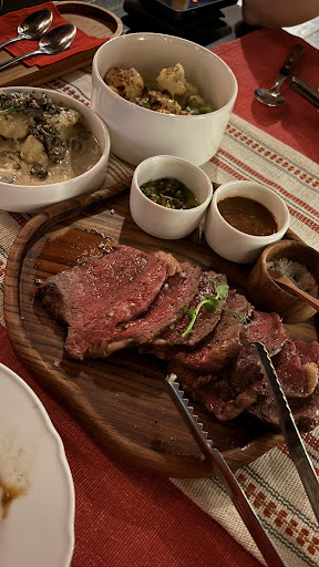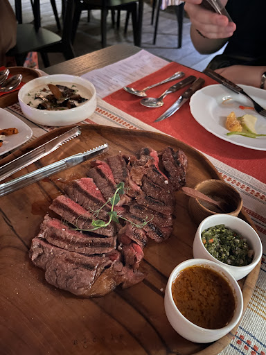 Pay IDR 800K for 2 people after tax service. The IDR 449k for a 300g steak ONLY (for 2 person) and the mandatory IDR 250k side dish package, which couldn't be ordered separately. The meze (side dish) had small portions with basic flavors, felt expensive.