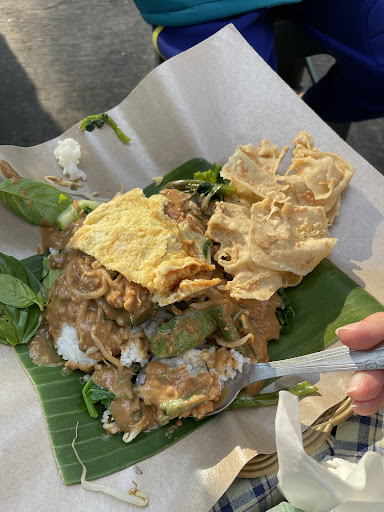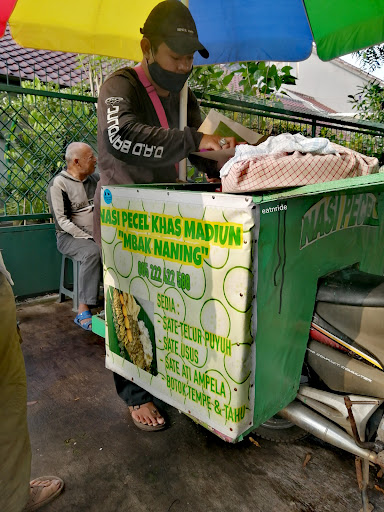 Read moreTempat jualan nasi pecel Madiun. Sayurannya lengkap, tambah telur dadar, pilihan tambahan lain juga banyak seperti sate puyuh, sate usus, bothok tahu, bothok tempe, gorengan tempe dan bala-bala. Harga sangat bersahabat, porsi cukup. Bila pesan nasi pecel di sini, sudah termasuk rempeyek. tekstur bumbu pecel-nya juga pas, bisa tambah sambal. Penjualnya ramah, hanya sendiri. Menyediakan air mineral cup. Dagangannya di motor, dengan payung besar berwarna warni. Disediakan kursi plastik/stool untuk duduk, wadah makan-nya pakai piring anyam. kalau pagi jam 7 cukup ramai. jam 9 biasanya sudah habis....