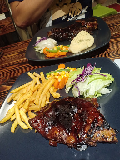 Food: Kali ini saya nyobain menu signature mereka yaitu Pork Ribs (95K). Menu ini berupa iga babi dengan berat kurang lebih 300 gram yang disajikan bersama french fries, dan mixed vegetables. Saya kurang yakin kalau pilihan side dish-nya bisa diganti dengan pilihan karena saya pelayannya sama sekali tidak menawarkan dan memang tidak tercantum di menu juga. Honestly, french fries isn't really my thing--it feels more likely a snack rather than a staple food. French Fries-nya juga sangat biasa, begitupun dengan mixed vegetable-nya. Iganya menurut saya sih lumayan OK, dagingnya empuk, daging dan tulangnya sangat mudah untuk dipisahkan. Saya juga sangat suka dengan saus sweet BBQ-nya yang benar-benar merasap sampai ke dalam, sausnya manis dan rich.