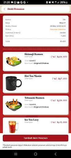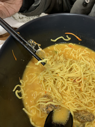 Read moreJujur sebenernya ga expect yang wah gitu, tapi mau kesini karena rame banget si ramen yang gede banget itu walopun gajadi mesen itu karena posisinya buka puasa khawatir begah. Tapi pas dateng RAMEE parah, sampe WL, gapapa sih, ditunggu ternyata lgsg dapet, pas masuk agak bau tidak sedap gitu (maap kyk bau ketek) trus pesen dgn metode scan, eh ada kode2 yg harus manggil pegawainya. Selesai pesen, udah deh nunggu, minumannya sekitar 10 menitan dianter, tapi makanannya ternyata lamaaa banget sampe hampir 1 JAM, pas dateng, aku berharap berkuah anget seger gitu kan soalnya abis ujan2an juga. Eh ternyata KERING, DINGIN, DAN MIE NYA UDAH NGEMBANG BENYEK GITU. Aku yg udh kelaperan banget nyeruputnya ga sampe 2 menit doang. Bumbunya sih sebenernya enak2 aja, teh angetnya juga khas2 kampung wangi gitu enak. Makasih deh, ga lagi2 kesini. Semoga ini kejadian di aku aja ya. Kedepannya ada...