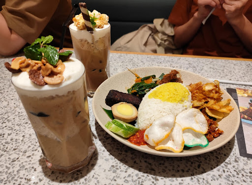 Read moreThe food is quite delicious especially the Nasi Berkat. The drinks overall were alright but I do recommend the Es Kopi Jangan di Tanya because of its sweet taste and the toppings on top of it, but one of the toppings which was the popcorn was pretty stale. The Jus Strawberry was a mix of sour and sweet. Lastly, the Es Kopi Racik Kacang is more bitter than the Ek Kopi Jangan di Tanya and the toppings on top of it were nuts. The service was excellent. The waitress that waited our table was very nice towards us. Lastly, the atmosphere, it was very loud here and a child...