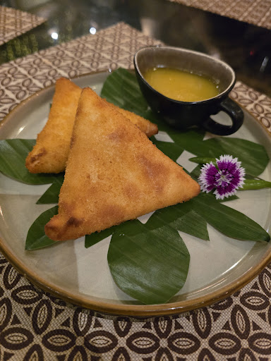 This Indonesian restaurant delivers a visually captivating and culturally rich dining experience. The dishes are beautifully plated with attention to detail and traditional elements. We tried corn Fritters with Herbs: Crisp, golden, and generously topped with aromatic herbs and vegetables. Served over crunchy vermicelli, this starter was both vibrant and flavorful. Grilled Chicken Skewers; Tender meat skewers with a light char, accompanied by fresh chili slices—simple yet deeply satisfying, letting the marinated flavor shine. Black Squid Rice and Grilled Set: A standout, the black rice log offered a unique texture, complemented by grilled meats, sautéed vegetables, and sambal. The presentation was traditional yet polished. Bamboo-Cooked Rice Dish; Served dramatically in a bamboo tube, it adds a rustic charm. Combined with smoky grilled chicken and spicy condiments, this was a highlight. Overall, a well-executed showcase of Indonesian cuisine, perfect for those seeking both flavor and cultural authenticity. Worth a visit for locals and...