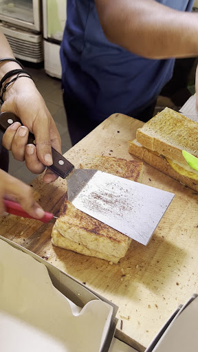 Mari bahas makanannya! Disini khasnya tuh roti bakarnya (karena ada roti isi biasa dan donat jg kayanya). Enak loh!!! Rotinya lembut banget, tapi lebih enak dimakan pas hangat2. Karena aku beli untuk dibungkus jd pas sampe rumah udah "kering" gitu rotinya, gak hangat lagi, masi enak, tapi better kl pas masih anget ngepul asep deh kayanya 😂. Dibakarnya juga pas gitu, gak terlalu gosong, atau kurang kering. Tapi butter atau margarinenya kurang kerasa hehe Ada 2 variant rasa roti yaitu asin dan manis. Yg manis, kamu bisa pilih 3 dari semua rasa ini; coklat, susu, stoberi, nanas, kacang, dll. Kl yang asin ada daging keju, daging telor, dan spesial (daging, keju, telor). Untuk ukuran roti jg ada 2, yg ririungan (ukuran besar, 1 loaf roti) harganya sekitar 50rban dan yg perseorangan (porsi personal) harganya under 30rban. dan jenis rotinya jg kamu bisa pilih; roti putih atau roti gandum (unik banget ada roti gandumnya) "Aduh aku pengen yg manis tapi pengen yg asin juga" JANGAN SEDIH BUNDA, kamu bisa beli setengah2 kok 😂 what a way out 👍
