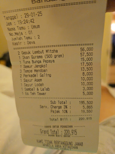 Read moreIt was crowded and difficult to find park here. Is it worth the hype? I could say yes after trying some of their menu. Basically it is an open space Sundanese restaurant with transparant kitchen in the middle, and I think they are pretty confident with their hygiene.