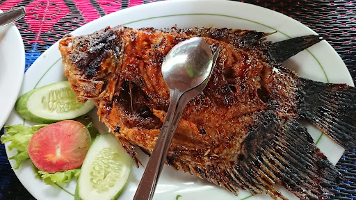 Harga makan, pricey dengan kualitas buruk. Kami dikasih nasi yg kemarin, warnanya kuning dan lembek, ga enak. Ikan gurame goreng, okelah gurih, tapi harga 100 ribu 1 ekor tanpa sambal itu gila. Ayam sambal hijau enak, sambalnya okelah.