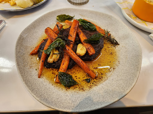 Coffee rubbed steak. Such a sick attempt. Coffee and steaks two of some my favourite things in the world. I wasnt quite sure what to expect. 1. The steaks look burnt. But it wasn't. Perhaps the coffee created extra crust on the outside. It smelled smokey. 2. The cook wasn't quite even. Some of steaks were cooked right, some parts are done. I ordered medium rare. Maybe using a different cut would yield a much consistent result. 3. The sides, hmmm you could probably add mushrooms to give extra balance to the taste. 4. I skipped the mash. And why serve it on a different bowl. The only different bowl you need for steaks are for the sauces. Overall rubbing coffee onto steaks arent the best despite it being two of some my favourite stuffs in the world. Maybe coffee should belong in a cup, pressed or filtered. The other meals were amazing. Fish and chips and toasts. The coffee was a killer.