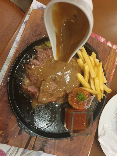 Read moreFound this place by accident when I drove around the area. Easy to find though, very close to Graha Manggala Siliwangi. My first impression was this place had a nice vibe, everyone was incredibly friendly. They did say that their specialty was steak but I ended up ordering something else. I think it was baked rice, some juice (forgot the name but it has "something-something smiley", Peachy Smiley perhaps), and something-something lychee. The menu is widely varied, which was nice. From steak, asian cuisine, pasta, and cakes. The ones that I ordered were all so tasty, I was delighted. You could tell that the juice was fresh, the lychee drink was unique. and my baked rice was just delightful in the right portion.