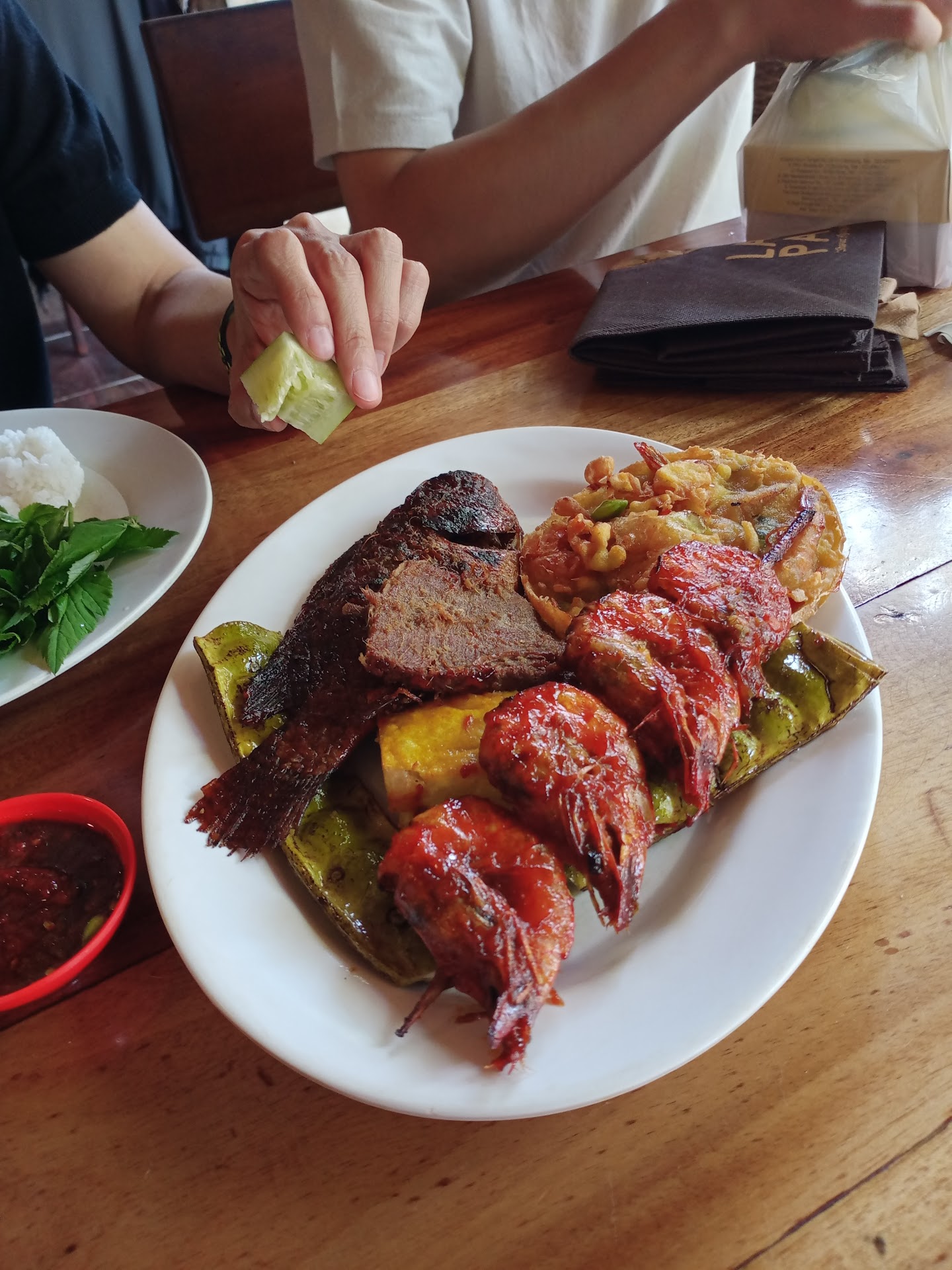 But this time I made a mistake. The Sundanese food taste good. Nasi merah - nila bakar - cumi bakar and every known to Sundanese snack as a sidedish like bakwan tempe goreng served well.