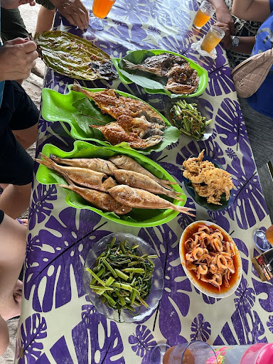 This restaurant is a sinple restaurant beside the beach. From the road you need to enter inside after seeing a small sign. You can sit in a hut beside the beach or inside the restaurant. The food are fresh and taste very good. Recommended to try Gangan Kepala Ketarap (Ketarap fsh head in yellow sour soup) , and grilled Ilak fish. They are so good. The shrimp and the stir-fried kangkong are also nice. For menu please check the pictures. The price is also not expensive. For 3 persons with 4 dishes, rice, and drink around...