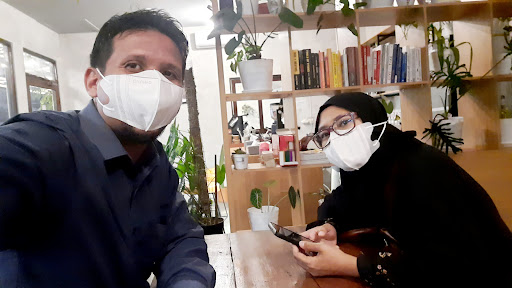 Read moreTempatnya bernuansa seperti kedai kopi yang kecil & tenang gitu walaupun di jalan yg ramai, gak ada salahnya kok untuk mampir habis dari perjalanan yang jauh buat minum & makan sebentar. Atmosfer udara diisikan dengan playlist musik jazz & bossa nova. Untuk kaum pecinta musik beginian sudah pasti bakalan betah duduk manis selama berjam². Untuk daftar menu.. Kopinya absolutely fresh & mantap, dari signature² hingga kopi susu recommended. Variasi non coffee-nya juga bermacam-macam patut banget dicoba satu². Snack² lumayan buat mengganjal perut. Cuman minim pada makanan berat saja. Tapi ya, pada umumnya tidak semua kafe wajib menyajikan makanan berat. Dari sisi kafe, yang utama emang harus kopinya yang nendang di rasa. Mudahan kedepannya bisa menambahkan main course agar kalangan² foodie juga tertarik dengan kafe...
