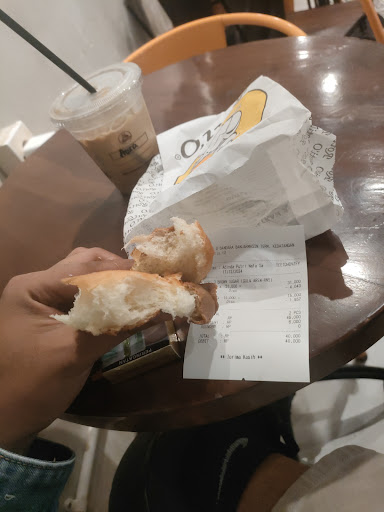 Terletak di waiting room bandara Syamsudin Noor, tentu saja tempat ini jadi pilihan yang layak untuk menunggu gate terbuka daripada sekedar duduk di kursi besi yang rada keras itu. Kopi O--sekaligus roti O--menawarkan tempat yang nyaman dan hidangan ringan terjangkau. Rotinya sih udah nggak usah ditanya lagi ya. Sudah terbukti kelezatannya. Terakhir saya ke sini, 30 Juni 2022, harga rotinya 14.000 per buah. Saya tidak mencicipi kopinya tapi kalau melihat dari harganya, masih tergolong terjangkau untuk standar kafe...