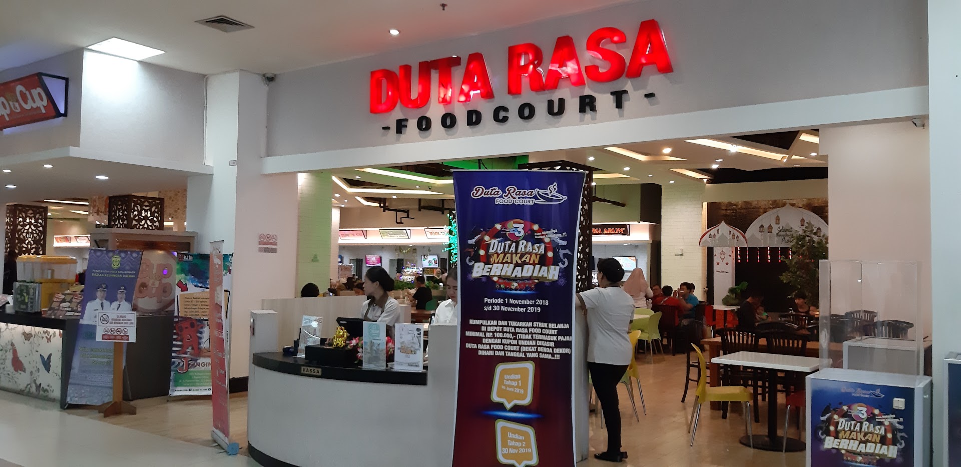 Read moreDuta Rasa terletak di Duta Mall Banjarmasin lantai dasar, untuk berbelanja di seluruh outlet kita harus menggunakan kartu khusus dengan cara deposit uang berapapun nominalnya dan setelah selesai makan sisa uang deposit dapat dikembalikan lagi. Beraneka food yang ada di Duta rasa seperti Italian Food, Western Food, Japanesse Food, Seafood, aneka masakan nusantara seperti gudeg, mpe-mpe, rica-rica, bakso, mie ayam, ayam dan ikan goreng dan bakaran, fried chicken, dan masih banyak lagi yang lainnya serta masakan khas Banjarmasin. Aneka minuman juga dijual disini yang hangat maupun dingin, aneka jus, es campur, es krim, es kelapa dan lainnya. Di Duta rasa juga ada hiburan live music dan kita juga bisa ikut...