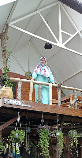 Kebetulan ada rumah keluarga itu D daerah darma bakti lestari 2 jadi cuman 4 menit dah nyampe deh ke resto alam ini.. Tempat nya agak terpencil dan dikelilingi oleh komplek perumahan jadi klo gak dikasih penunjuk jalan kayaknya bakal tersesat deh.. Mungkin nanti di depan komplek ya, bisa dikasih papan nama yg lebih besar... Waktu awal masuk.. Ada kayak jembatan gitu dan di ujung jembatan ada semacam panggung gitu, didalem nya cantiiik banget, khas rumahan gitu lah ya, jadi serasa makan D rumah sendiri dengan private cool dan waiter, hee.. Unik banget... Tempat duduknya juga artistik semua.. Seolah-olah duduk di kursi pohon. Kemudian yg lebih unik lagi, itu kok kayak ada perpustakaan mini gitu, buku2 nya seputar kesenian khas daerah Banjar gitu ya.. Mungkin pas banget buat para mahasiswa jurusan seni ataupun pendidikan Bahasa daerah nih klo mau nyari judul skripsi disini buanyaakkk hee.. Tapi saya penggemar literasi fiksi barat, seandainya ada karya J.K Rowling atau pun Stephanie Meyer mungkin saja saya gak bakal pulang sampe sore, hahaha... Nilai plus dari arsitektur nya yg khas unik daerah Banjar, ada rumah panggung nya lagi D bagian dalam dan ada kolam renangnya.. Sayangnya ini kolam sudah tidak D fungsikan buat berenang lagi.. Katanya sih krn sering ada emak2 yg ngasih makan anaknya di pinggir kolam, sehingga kolam nya jadi kotor.. Padahal klo kolamnya masih D fungsikan jelas jadi saya tarik tersendiri buat family destination ketika liburan... Utk rasa makanan, enak ya, masakan khas Banjar, harga nya juga standar lah ya, masih relatif terjangkau klo dibandingkan dengan spot foto nya yg instagramable banget. So, bolehlah ya nanti kesini lagi bareng suami, klo bareng anak, takutnya nanti kepengen berenang malah...
