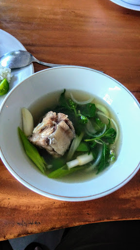 We were the only customer there as it was not exactly lunch time, a bit worried but still went ahead and order. Thankfully the food was delicious and for some reason feels healthy, probably because we ordered a lot of greens. The fish soup is definitely the gem here, very refreshing soup and big chunks of fish with no bad smell. Also ordered fried gourami with green chilli and kangkung and they're okay. Price is reasonable for me but might be expensive for the locals, normal though since they seem to target...