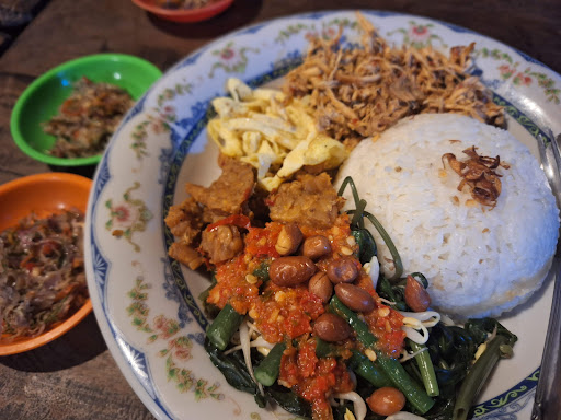 Makanan yg dicoba: Nasi ayam betutu (18k) -- bumbu dan rempahnya kerasa, ayamnya super empuk, ga pelit kuah, udah ada plecing kangkungnya juga. Porsi nasinya juga banyak, kenyang pokonya! Sambel matah (free) -- baru pertama ngerasain sambel matah ada rasa kelapanya gini, entah pake minyak kelapa atau ada parutan kelapanya, tapi seger dan pedes banget (buat lidah jawa tulen) Sate lilit tuna (2k per tusuk) -- enaa bgt!! Tunanya lembut, bumbunya pas, dibakar/dipanggangnya agak kurang lama menurutku. Dan murcee gasi sate tuna udah berbumbu loh cuma 2kšš meskipun agak Pepes tuna (5k) -- favoritku!!! Ini lebih enak dari sate lilit. Bumbunya kerasa tp ga overpowering si tuna. Trs dipanggang/dibakarnya pas, kaya... cocok aja di lidahquuuš