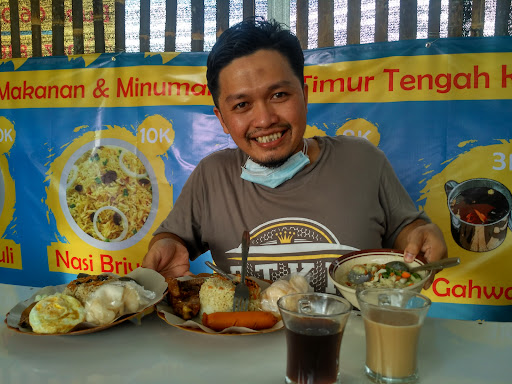 Read moreNasi kebuli,briyani,bubur,teh arab,dan kopi Arab.... Semua menu rasanya mantab dan terjangkau.... Rempah" dan aroma nya terasa... Tempat nya juga bersih,nyaman.... Pelayanan ramah...... Jujur setelah makan nasi kebuli/briyani pencernaan saya langsung lancar....😁 Saking terasa rempah" nya hehehe... Mantap..... Saya meReview dengan...