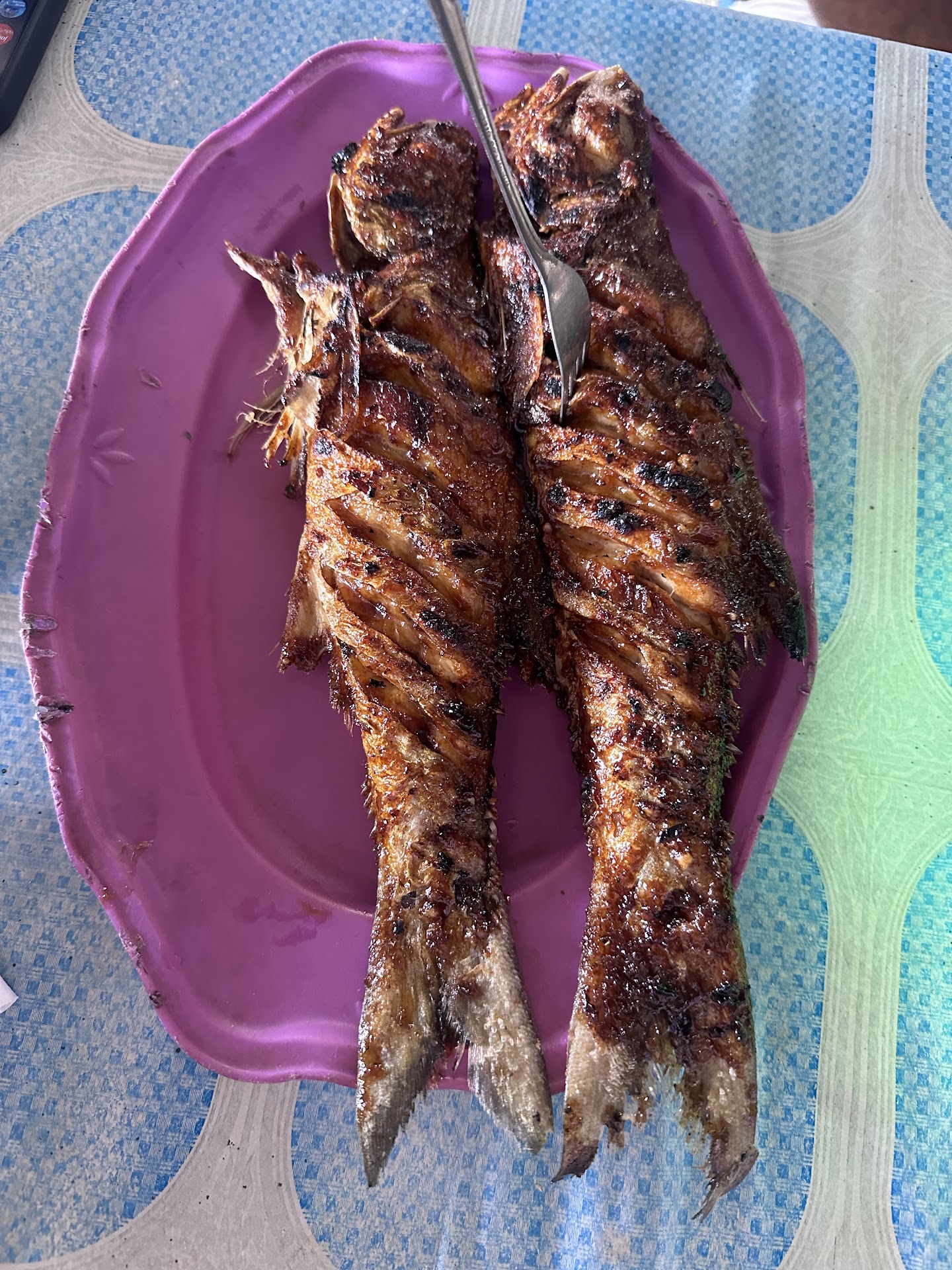 Cari tempat makan di pantai depok ini menurutku gak bisa asal ya, karena gak semua nya masakannya enak ✌🏻. Tapi untukku, warung makan ini lumayan enak masakannya, kebetulan karena ada kerjaan jadinya di ajak kesini dan rasanya ok. Kami dipesankan ikan surung bakar ( ini katanya ikan favorit ) tekstur nya kaya ikan kerapu gt ya dan first time aku makan ini, daging ikannya lembut bumbunya pun meresap sampai dalam. Selain itu kami juga dipesankan udang seperti dimasak kuah dan ini enak juga karena kalo kuahan begitu kan cenderung masih amis ya, ini enggak. Bumbu meresap di udangnya juga, cumi goreng seporsi juga berlimpah tapi gak sempat icip karena baru kurangi gorengan. Bahkan untuk tumis kangkung nya pun enak! Jadi overall untuk rasa menurutku keseluruhan masakannya enak dan gak monoton bumbunya. Oia untuk tempatnya bener2 dekat sama pinggir pantai ya jadi keluar kita bisa jalan langsung ke pantai. *jangan lupa pesan es kelapa muda+es...