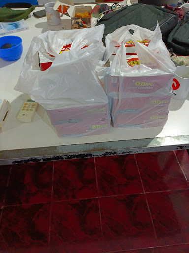 Sering makan di olive . Tapi kadang empuk kadang keras. Kadang besar kadang kecil dadanya. Mungkin harus ada quality control lagi. Supaya standarnya bisa rata di semua outlet. . Lokasinya di sebalah utara lampu merah. Agak tertutup pohon jadi lebih teliti kalau mau belok. . Kalau kemarin pas beli disini sih enak enak aja. Mungkin agak bingung di saus sambal atau tomatnya karena labelnya tidak begitu jelas. Tempatnya lumayan bersih. Lumayan luas juga. Tapi masih sering nyenggol nyenggol kursi kalau mau jalan. Mungkin kalau penuh bakalan agak sesek. . Untuk harga standar. Siapkan uang parkir juga ya...