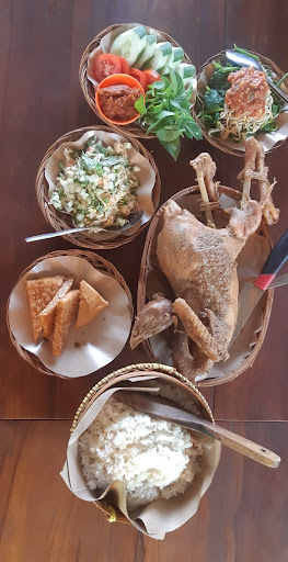 Got here ard 9 am (after gave them a call) & we were the only ones there. Our group of 5 ordered the package for 5 & served with savory white rice, a whole slow cooked chicken, a portion of fried tempeh & tofu, assorted raw vegetables/lalapan and trancam (freshly diced vegetables with grates coconut seasoning). Aside fr that, we ordered the plencing kangkung (blanched water spinach with fresh sambal). Chicken was huge, juicy & savory. We left with...