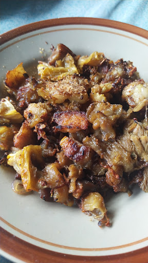 untuk kronyos : teksturnya kurang sesuai sama lidahku karna ini direbus, jadi lemakny kurang terkronyosss minyak. beda tipe dengan krenyos Sate M*k Adi. prosnya : porsi melimpah, cukup gurih, not bad buat side dish.