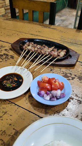 Read moreJujur yaa satenya enak, cuma ada bau prengus dikit disatenya. Satenya tergolong sate seger, penyajiannya juga pake hot plate. Cuma sayang, disini gabisa beli pertusuk. Jadi harus beli perpaket yang harga paket campurnya 55 rb dapet 10 tusuk. Itupun belum termasuk nasi dan minum. Gak cocok buat mahasiswa, karena harganya terlalu mahal. Porsi nasinya juga dikit banget, cuma lewat doang diusus. Saran. Buat pemilik ya, untuk porsi nasinya tambahin lagi, karena menurut saya terlalu dikit, terus untuk tempatnya juga kurang bersih, mejanya berdebu, lantainya juga coklat, asapnya kemana mana. Saran juga untuk pelayannya, kalau ada orang mau pesen gausah ditungguin, soalnya terkesan mengintimidasi...