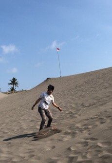 Gumuk Pasir Parangtritis yang sangat indah, hamparan pasir yang luas sangat menyenangkan utk bermain sandboard. Biaya sewa papan seluncur sekitar 70 ribu dan digunakan sepuasnya. Parkir bertarif 3k utk motor sangat terjangkau. Menuju kesini kalian harus lewat jalan parangtritis. Fasilitas umum berupa kamar mandi yang dikenakan biaya 2k-3k. Waktu yang cocok utk menikmati gurun pasir ini adalah saat sore hari sampai matahari tenggelam. Karena tidak terlalu panas dan langit sangat indah menuju senja. Kalian harus mencobanya jika sedang berlibur ke Jogja. Merasakan padang pasir serasa berada di timur tengah tanpa harus mengeluarkan biaya yang banyak. Bagaimana kalian tertatarik datang ke sini?? :D