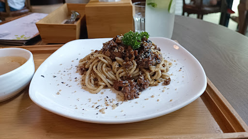Read moreCame here twice because we didn’t have desserts the first time. I didn’t even take pictures of all the food we ordered. We spent about 350k the first time we went, and 550k the second time we went cos we ordered so much more. My favourite was the quiche and the fried oyster mushrooms, very good. The satay was also superb. Their matcha could be made without sugar, and the coffee was really good. Aglio olio and bruchetta were average. The rice with the spicy local salad thing was really good if you like spicy food. It came with some tempeh satay which was thoroughly seasoned and flavourful. Desserts were served frozen, so we had to patiently wait for it to thaw and soften before eating. If you plan on getting desserts, order it at the start...