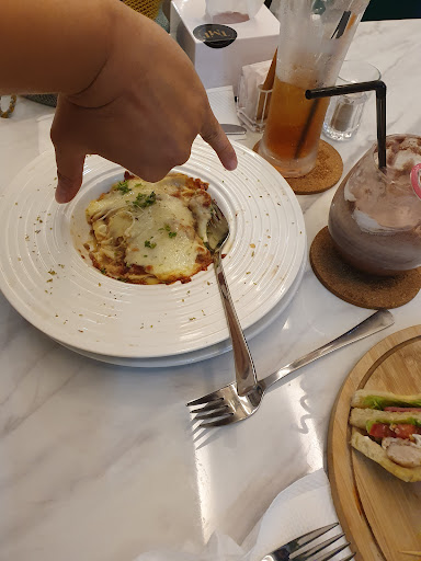 The cafe is clean, comfortable, suitable for hang out with friends or family. You also can arrange meeting or birthday party at 2nd floor, the cafe can manage for you. I like the mojito, lava cake and tom yum seafood at this cafe too, it's so nice and delicious. For moslem, there is a small mushalla at 2nd floor if you need to shalat...