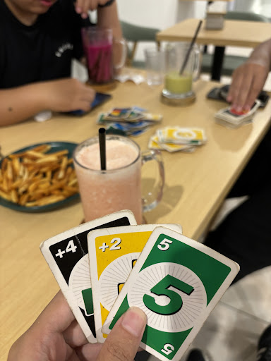 ada beberapa game board disini, wifinya lumayan untuk sekedar wfc. harga makanan dan minumannya cukup murah meskipun sekarang sudah ada PPN tapi masih tetap tergolong murah.
