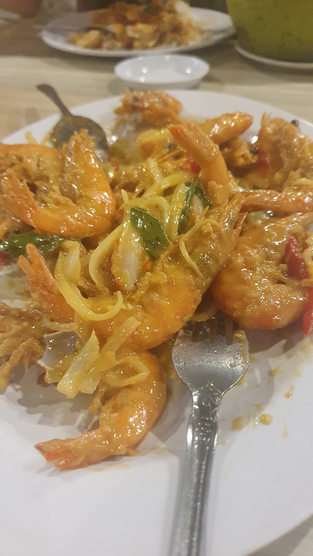 We ordered curry crab as I read about its review was good, porched white prawn with garlic and a plate of sambal kankong