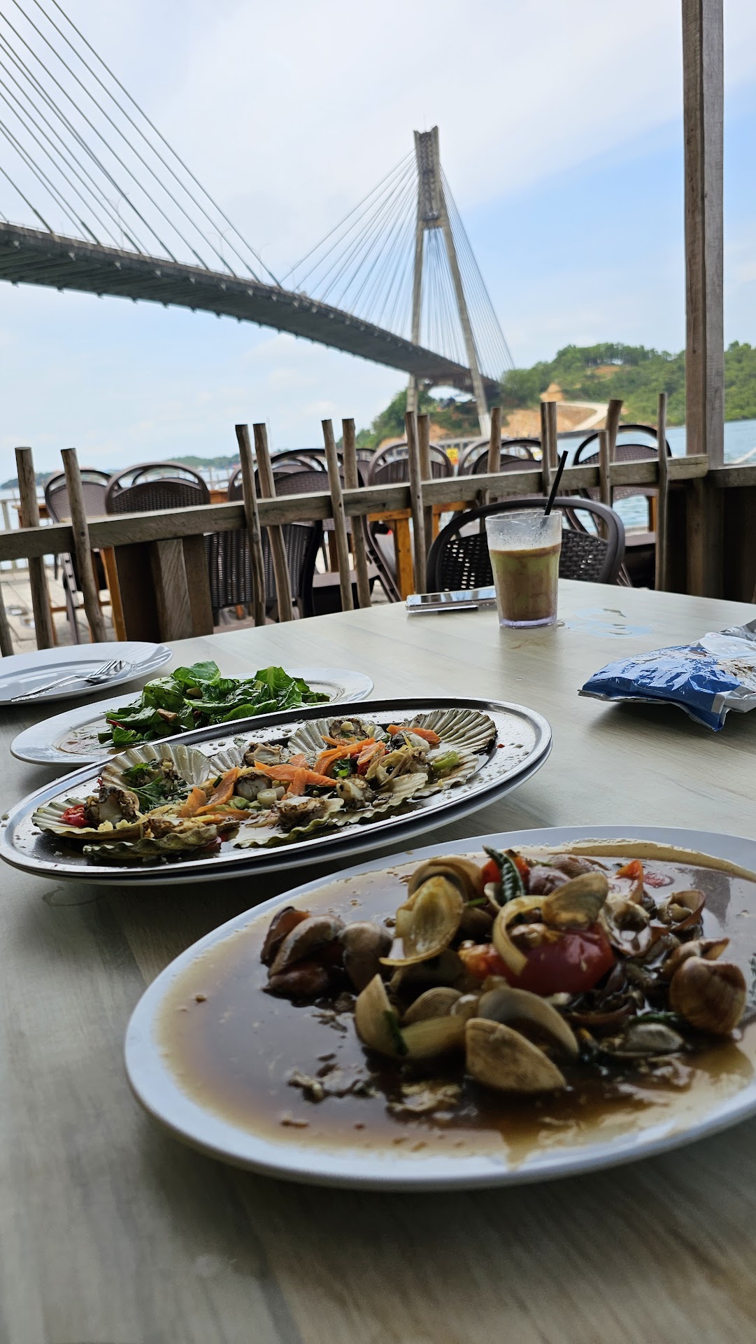 The only downside would be the location of the restaurant. While it boasts a very nice view of the river as well as the bridge, it's quite a steep slope down beside the start of barelang bridge. Also, be sure to either drive here or to hire a driver as we experienced difficulty in booking a cab out of the area. We tried Grab and Gojek for 30minutes but we only managed to get a driver from Maxim.