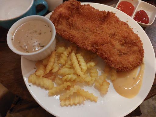 Firstly, when we walked in the cafe, the atmosphere is full of noises. Due to narrow spaces between the seats, the next table aunties that are making lot of noises, speaking loudly, has greatly disturbed us. Secondly, the mushroom spaghetti is less than what we expected. The spaghetti is not al dente like what it's supposed to, it's kind of hard, and overall this dish left an unpleasant lingering taste resembling numb feeling in our taste buds. Thirdly, although the chicken katsu is beautiful in appearance, but in terms of taste, it's disappointing. The chicken itself, although it's crispy on the outside, it looked like the meat is wet, watery, and also tasteless, no salt at all. This also applies to the french fries that smelt like it's made from whole potato mix, including the skin. Fourthly, the vanilla latte. It's our favourite drink and we don't get it how could two same drinks could have different taste? One of them is sweet and the other one, not. What happened here? Lastly, the service is disheartening. Initially, we ordered a matcha cheesecake, the waitress told us that there's no more of this menu so we ordered another one of other flavour. The waitress came back again, telling us there's no cheesecake, there's only crepe left, oreo and biscoff. We ordered the oreo one, and the waitress went into the kitchen, but she did not left us for long, she brought the news that there's only biscoff left. We decided to give the biscoff crepe a try. But life is full of surprises, what came out from the kitchen is.....biscoff cheesecake! All I know is we were so speechless. She told us that the reason for this change in dessert is because there is no more crepe left, so she kindly changes it, without asking our opinion :). This kind of service is not professional enough for us and it seems like the waitress herself is inexperienced and have no inept handling the customers.