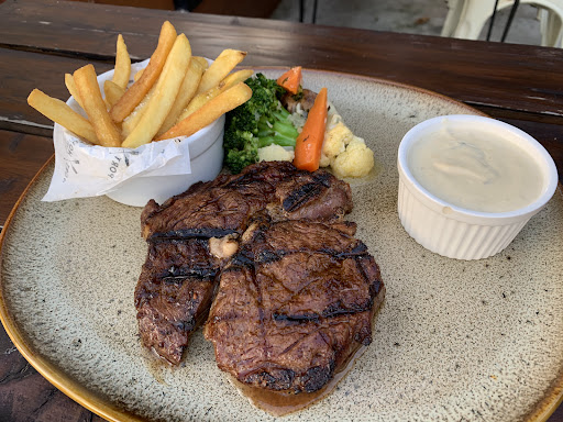 Read moreFirst time going to this place with wife and son. Came here just to relax and chill out a bit. So we chose to sit outside and a bit in the corner. Just to ensure social distance with others. The waiter came and politely serve us. She was really kind and supportive on answering our questions. Good service! We ordered pepperoni and ham pizza, black angus ribeye, moskow mule, ice blue tropical, and ice lemon tea. After couple minutes, they served us the drinks first. Nicely made and taste good. Only the ice lemon tea for my son was a bit plain. We didnt realize it until finish eating and my son raised this. So told the waiter, but seems too late as it was finished anyway. The cocktail and mocktail taste good, really accomplished our relax time. Then the food came, started with pizza then steak. Pizza is thin type, looks good and taste gold. The dough so thin until some part taste like cracker. The steak came with medium served as what we requested. Taste good with mushroom sauce and french fries. The steak even medium served but some part in the corner was still medium rare. Small remark for improvement on taking care the grill level of the steak. But overall it was a great food indeed. Good place, good ambience, great service, great drinks, and good food. Certainly will come...