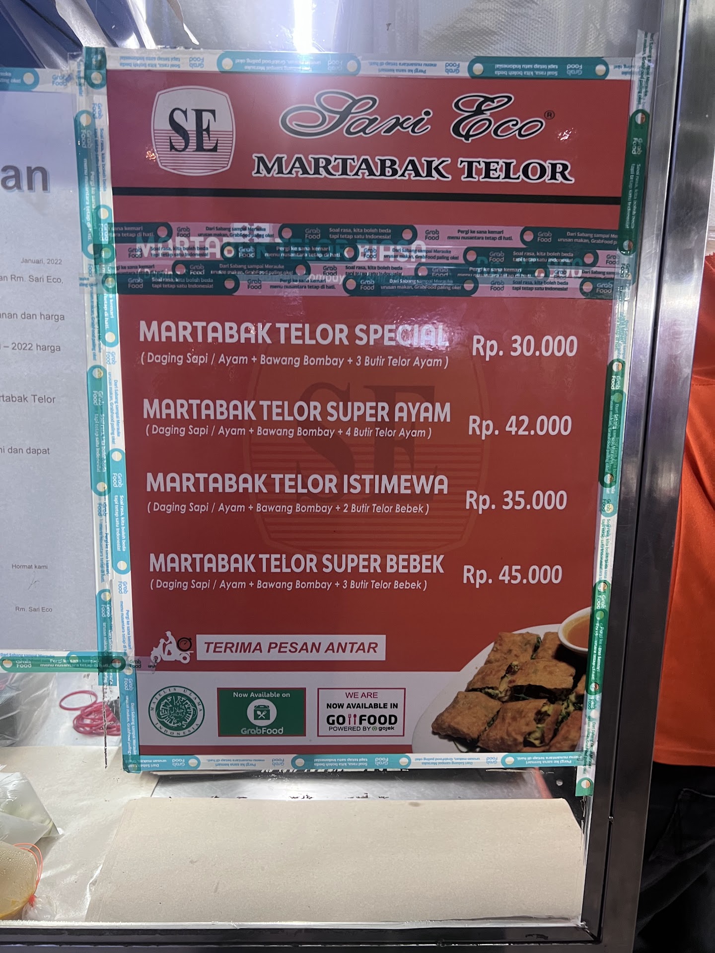 Selalu suka sm martabak sari eco yg legend ini,, Klu beli pasti yang manis n yang telor,, Yg paling aq suka kita gag perlu nunggu lama karena mas"ny gercep banged,, Wlu harganya ud naik 5K per item tapi masih teramat worthy bwt dibeli, Masukan dikit kak, kuah untuk karinya kenapa sekarang cuma setengah cup..? Penuhin lagi dunk kak, blm kelar makannya, kuah karinya ud habis,, Sukses selalu untuk...