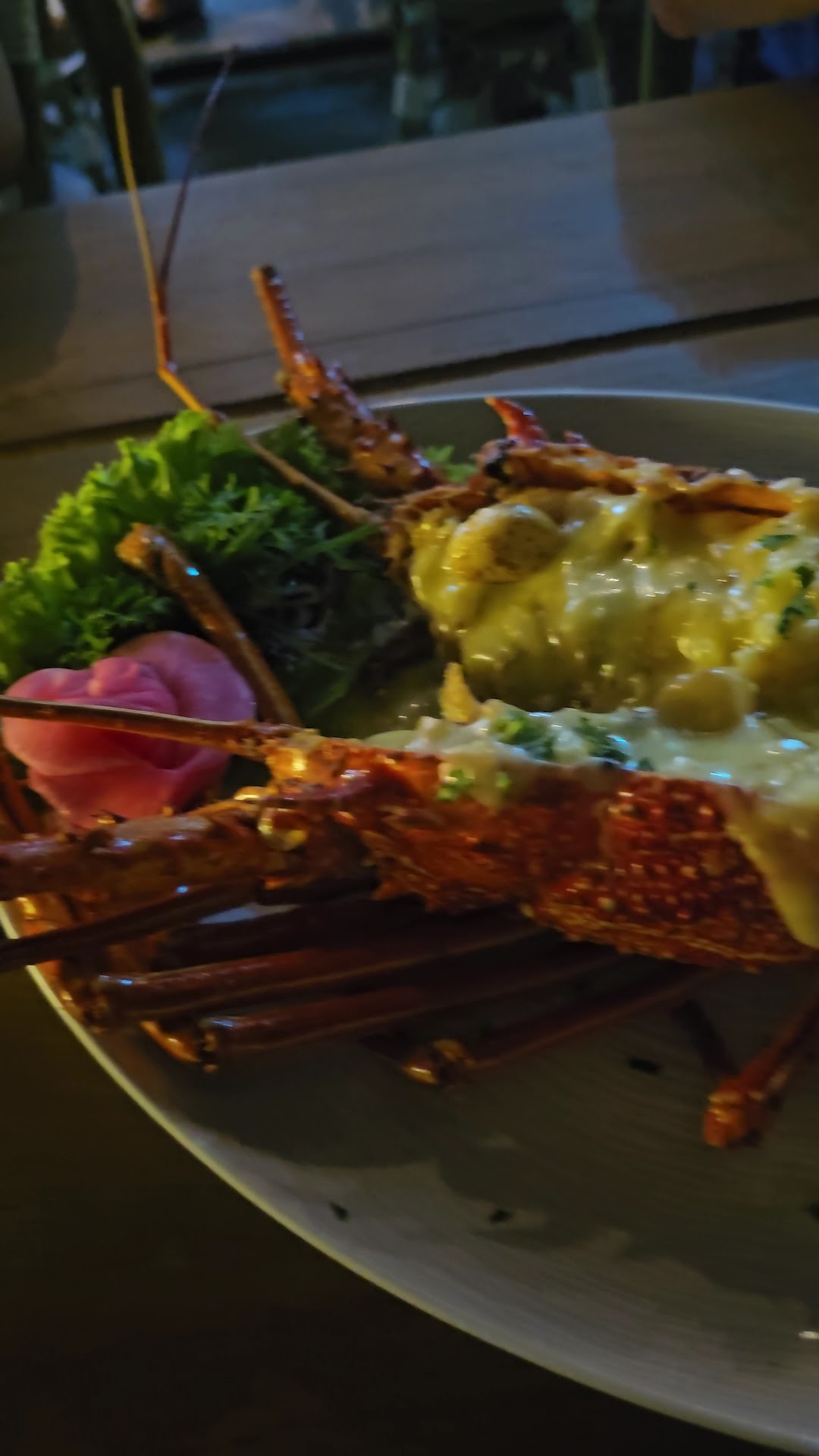 The worst experience was the steamed lobster. When it arrived, I noticed the head was undercooked and the flesh was still frozen inside. I strongly suspected it was a frozen lobster that hadn’t been properly prepared. It was disgusting, and I handed it back to the staff. Shockingly, there was no apology or explanation. They took it to the kitchen without saying a word, and only after 15–20 minutes did they come back with some fried mushrooms as a form of service recovery. At that point, I didn’t feel safe eating anything else they served.