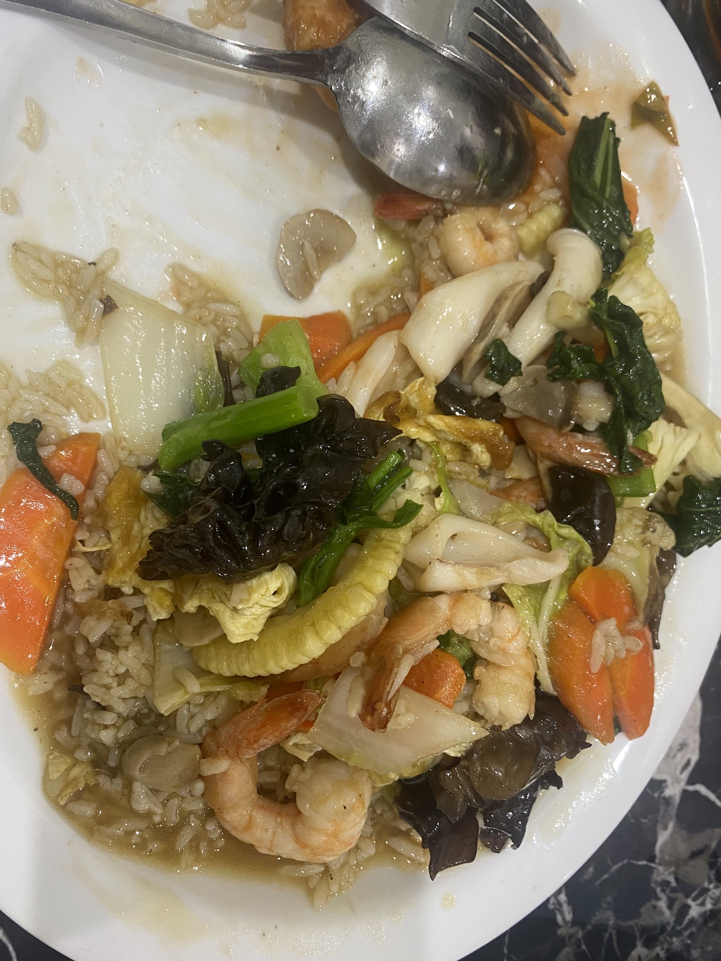 Read more2 menu datang sesuai. Tapi saya mesen nasi capcay yg dtg kyak capcay porsi. Di tanya salah engga? Smpe udah jelsin saya mesennya nasi capcay bukan capcay porsi. 1 waitress k kitchen, lanjut k meja lg blg nanti d terangin sm org kitchen. Ga lama orh kitchen dtg, kita jelasin kita pesan nasi capcay bukan capcay porsi, gak ada jelasin lagi malah bingung, ywd saya ngalah Saya putuskn saya gpp bayar capcay porsi minta ini stengah di bungkus. Stelah di bawa ke kitchen, org kitchen balik lg klo mau di buatin lagi, ssuai pesanan, tp saya gak mau kekeuh pake yg tadi aja drpd lama. Tp apa yg terrjadi? Stlh waitress dtg Dia blg klo nasinya ada di bawah capcay. Foto yg aku share udah aku ubek2 krna aku kesel, bisa liat di foto yg aku minta takeaway (tgl ksh k ayam). Masih lanjut di kasir aku blg, klo mmg salah blg aja, msh dgn alasan bahwa td mau jelasin tapo “ngggg” dan gak bs nerusin ngmg lagi. Emg paket nasi capcay nasinya d benyek brg capcay ya? Yg pertanyaan saya kenapa dr awal smw pegawai bgung ujungnya seilah2 saya udah ngalah tp ngerasa di boongin dengan sajiannya?? Itu plate bner buat plate paketan nasi capcay? Atau akal2an meeka? Tolong di edukasi lagi smw kryawannya bgmana cara berkomunikasi yg baik. Senin 9 sept 2024 jam...