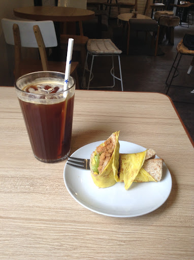 Anyway, they still provide good array of beverage and tempting, uncommon snacks. Had iced black coffee (33K) and chicken tortilla wrap (25K). Too expensive for simple black coffee, IMO. Anyway, the coffee was strong and good, a bit too sour for my taste but still fine. The wrap was actually omelette, but was quite delicious. I love their earth-loving gesture by using paper straws and real glass cups. Also love how thoughtful they arranged and served the order artistically. Worth to visit. A bit expensive (not as high as Starbucks), but still worth it. Will visit...