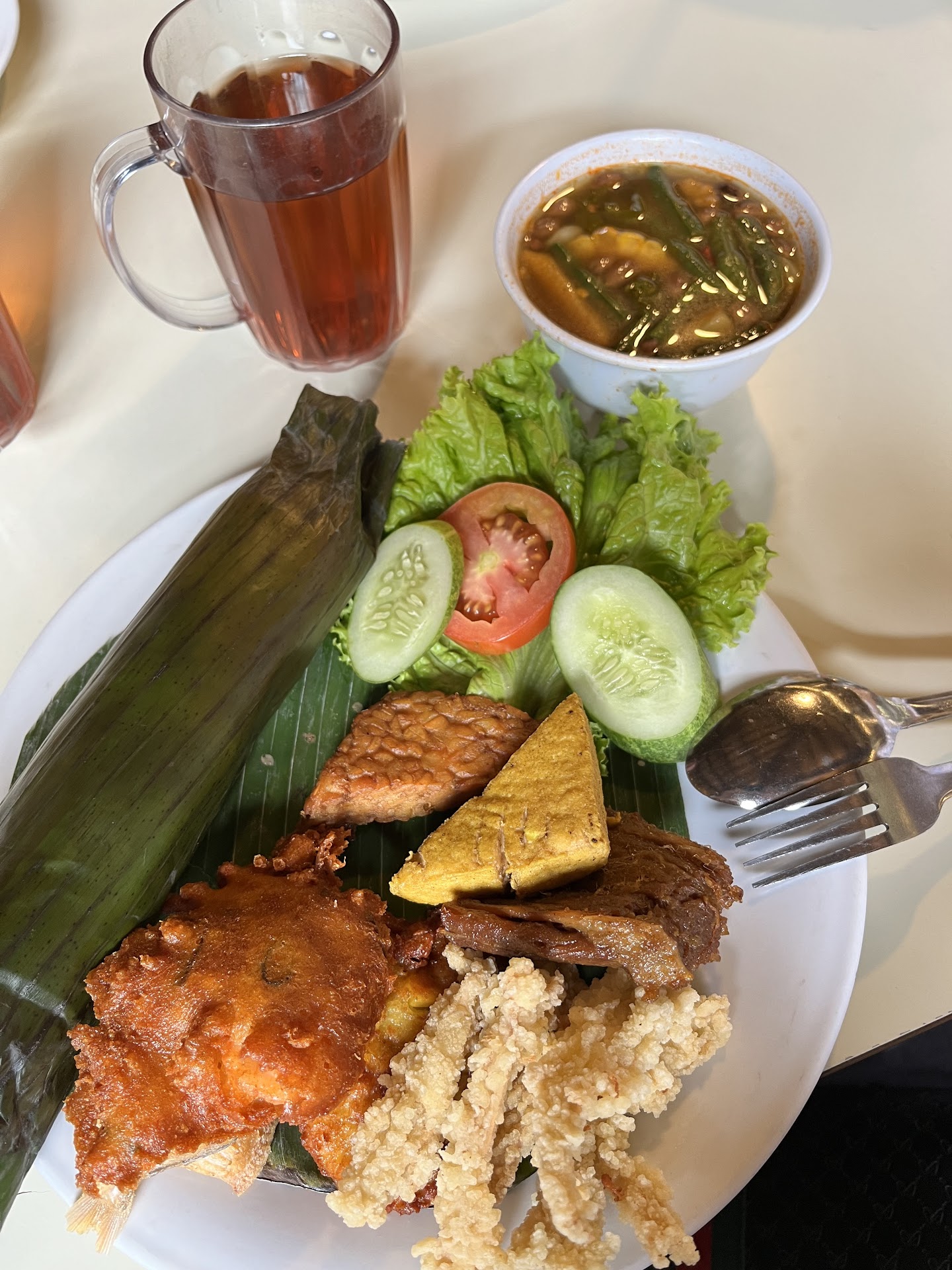 The food was good in my standards, but a little bit too salty in my opinion. I ordered nasi timbel komplit with empal, I think that the rice was good and smelled great because it’s covered in banana leaf, but a bit too dry, and the empal is great in texture, but a bit too bland (the spices was not soaked in the meat enough).