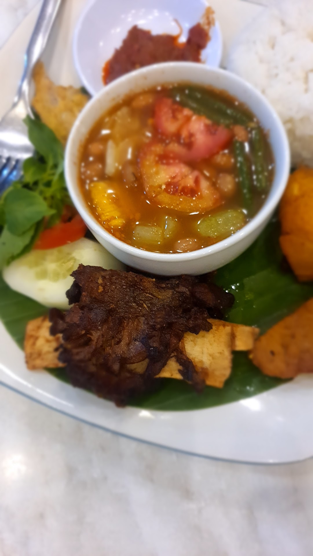 Foods are tasty especially Mie Keluntung and Ayam Cabe Kering. But I reccommended to not buy sweet ice tea. The taste was weird, honestly. Actually, the situation was good, but it was hot and there was no one standby in the room so we couldnt ask any services at all. Even we ask for a pickles, they said that they dont have it. Last one, we asked them to take away some foods, two kind of cuisines, but they wrapped into one box which was not normal, I guess? Oh, and it...